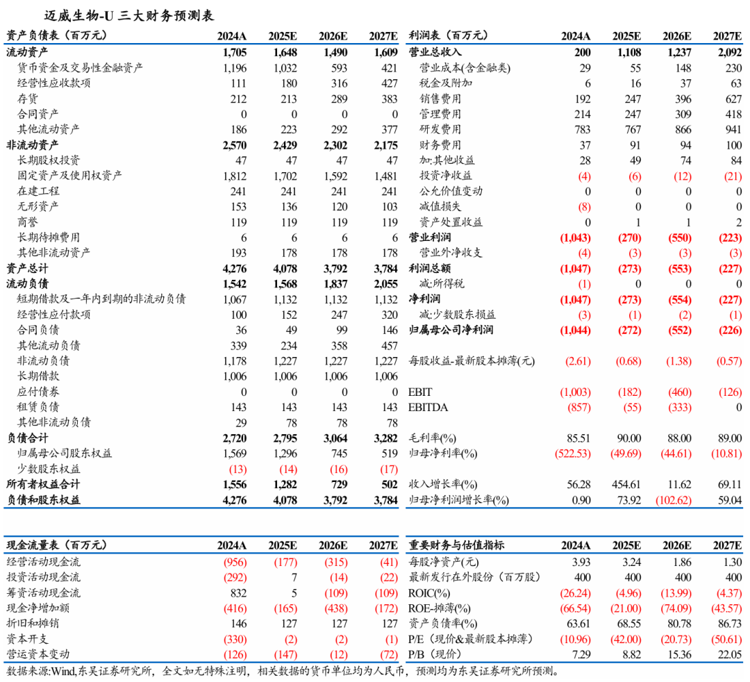 两项重磅授权同步落地,BD进入新阶段:①与Calico Life Sciences就靶向IL-11单抗达成独家许可协议,Calico获得9MW3811海外权益,并向迈威支付首付款2,500万美元,里程碑付款最高5.71亿美元,以及产品销售分成。9MW3811是全球首款进入临床阶段的IL11单抗,在年龄相关性疾病领域已完成中、澳I期临床研究,合作方Calico由谷歌母公司Alphabet和Arthur D. Levinson共同创立,并与艾伯维就衰老和与年龄相关的疾病达成研发合作,共同投资开发。②公司与齐鲁制药签署阿格司亭α大中华区授权协议,将获得首付款3.8亿元人民币、最高1.2亿元销售里程碑付款以及最高两位数百分比特许权使用费。阿格司亭α是公司具有自主知识产权的新一代长效升白药,在产品安全性、成本和质量控制等方面优势明显,合作方齐鲁制药是G-CSF领域的领军企业之一。通过这两项授权,迈威将获得约5.6亿元首付款,有效补充公司现金流。此外,公司Nectin4 ADC、B7H3 ADC、CDH17 ADC、ST2等多款创新品种具备海外授权潜力。