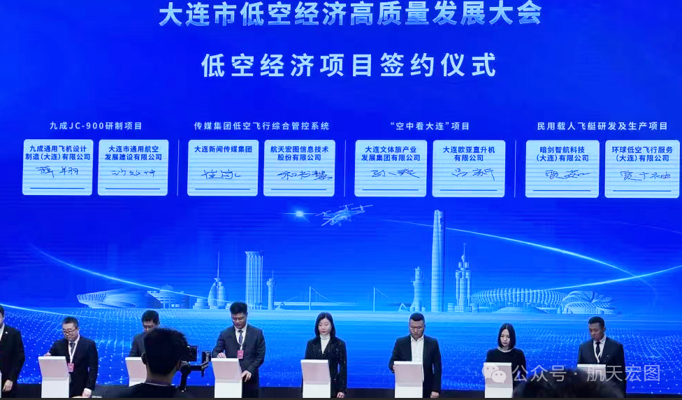 1月14日,大连市低空经济高质量发展大会召开。辽宁省委常委、大连市委书记熊茂平发表讲话,大连市委副书记、市长陈绍旺主持会议,多名院士、高校及科研院所专家、行业杰出代表出席本次会议。作为国内空间信息技术服务领军企业,航天宏图开拓了更多低空经济全行业应用场景。本次作为特邀企业代表参会并参加了低空经济项目签约仪式、大连市低空经济产业发展成果展等一系列精彩活动,全方位展示了公司在低空服务领域的技术实力。