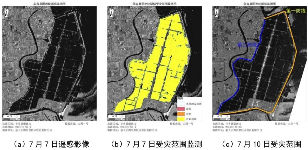 暴雨洪水应急响应,全天候监测华容县溃坝及洪水淹没变化