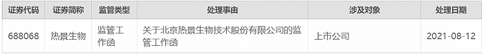 8月12日消息,热景生物收上交所监管工作函,但具体原因尚未披露。