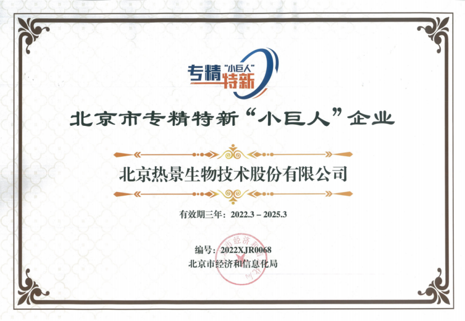 近日,2021年北京市专精特新“小巨人”企业名单已公布,热景生物位列名单之内,被认定为专精特新“小巨人”企业。