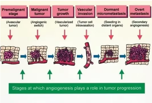 1971年,Folkman教授团队提出一种假说:假设肿瘤没有新的血管生成,由于氧气和其他营养物质供应的限制,肿瘤大小不会超过2mm,后续许多学者专家的研究不断证实了该假说,VEGF反映血管的增殖及病变,是刺激血管生成的重要因子。
