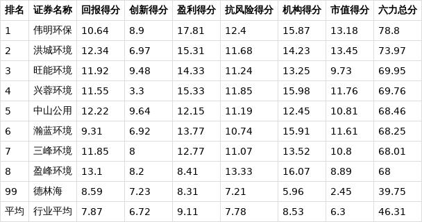 从所属行业角度来看,在申万一级环保行业的137家上市公司中,德林海位列行业第99位,行业平均分为46.31分。