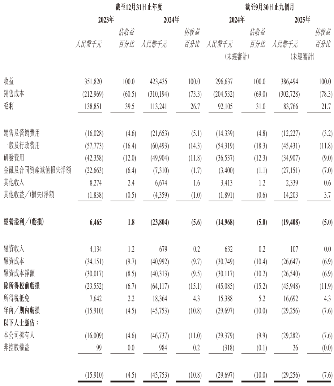 华依科技2025年前9个月营收为3.86亿元,毛利为8377万元,经营亏损为1941万元,期内亏损为2926万元。
