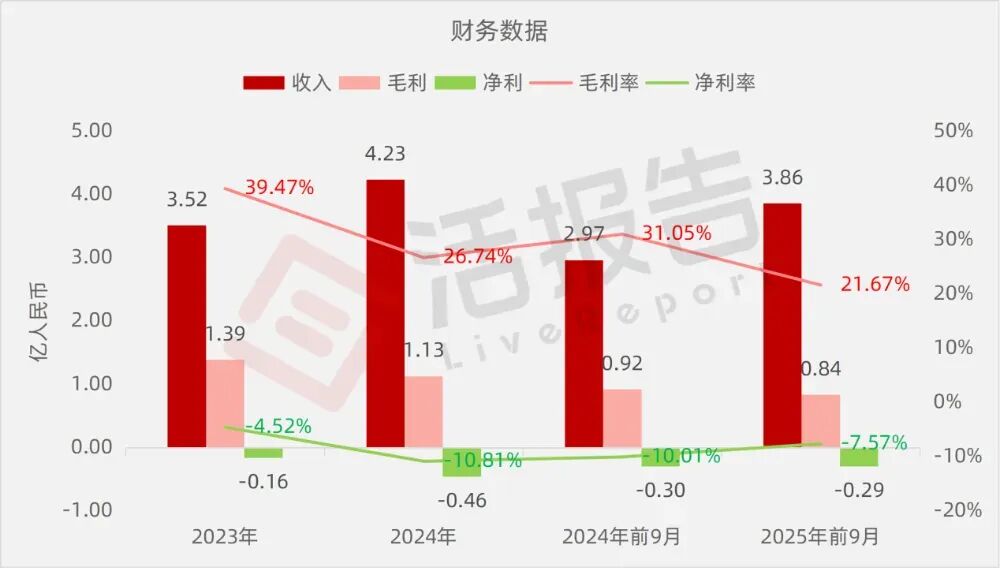净利分别约为人民币-0.16亿、-0.46亿、-0.30亿、-0.29亿,2025年前9月同比-1.48%;