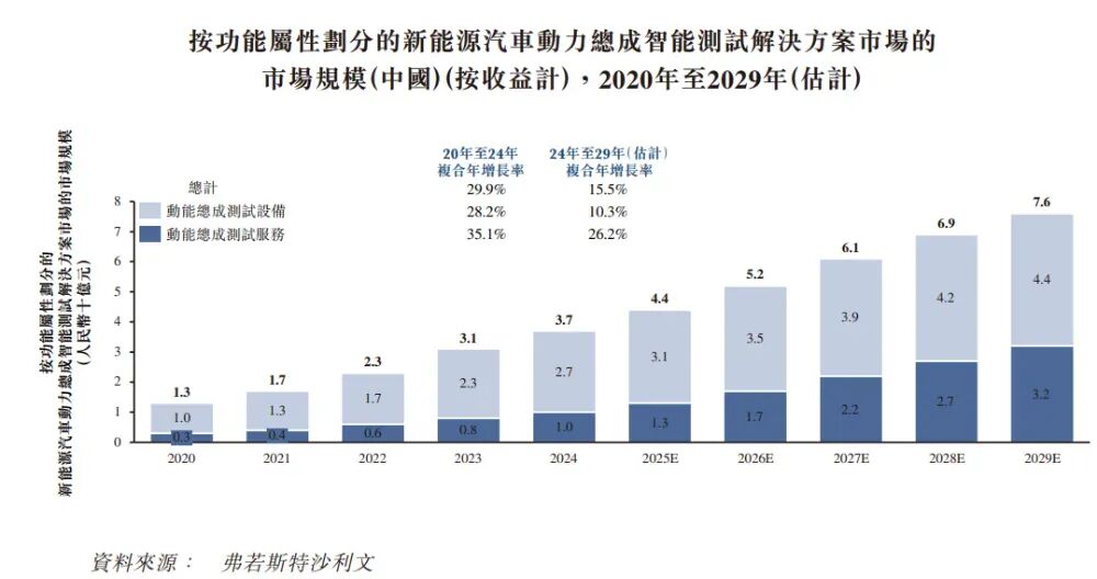 根据弗若斯特沙利文(Frost & Sullivan)的报告,中国新能源汽车动力总成智能测试解决方案的市场规模由2020年的人民币13亿元增加至2024年的人民币37亿元,复合年增长率为29.9%。