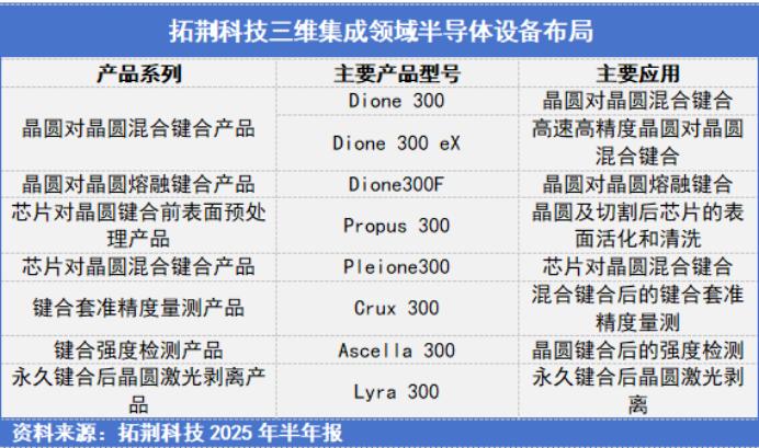 拓荆科技早已在此布局,其开发的“键合设备”就是三维集成中用来将芯片像胶水一样精准粘合的关键机器。2024年,这块业务收入已接近1亿元,增速超48%,开始起量。