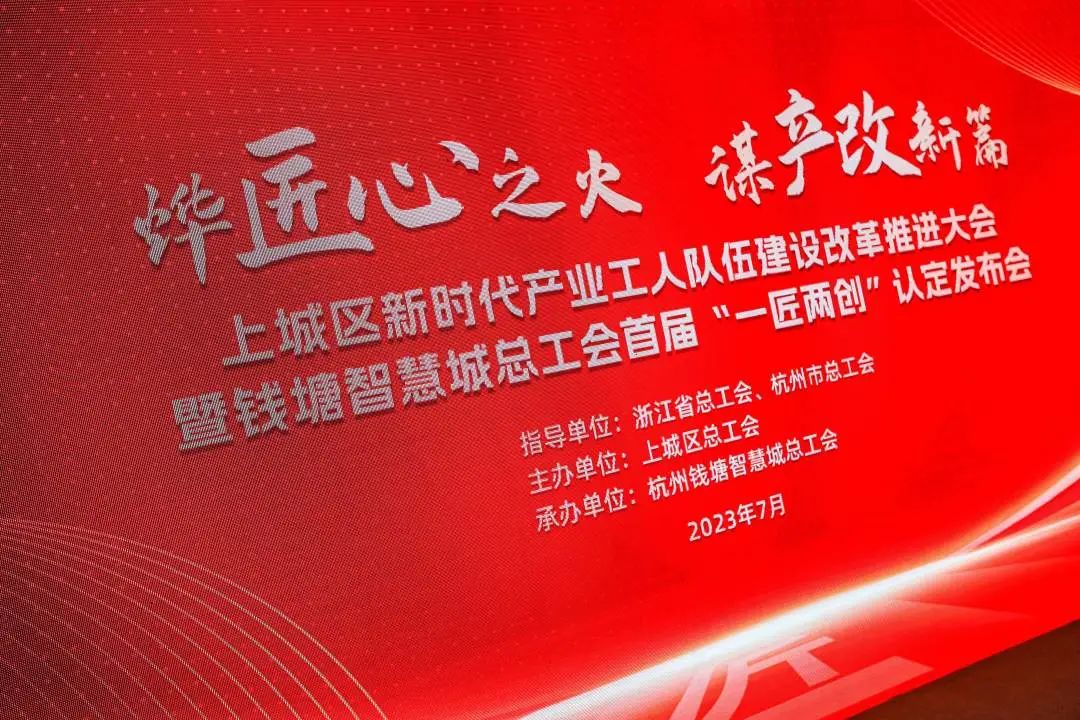 7月11日下午,上城区新时代产业工人队伍建设改革推进大会暨钱塘智慧城总工会首届“一匠两创”认定发布会于钱塘智慧城城北分部创智工匠服务中心举行。本次活动由浙江省总工会、杭州市总工会指导,上城区总工会主办,杭州钱塘智慧城总工会承办。浙江省总工会劳动和经济工作部部长沈勇斌,杭州市总工会经济工作部部长钱晓岚,上城区人大常委会副主任、区总工会主席干海和等领导出席会议。