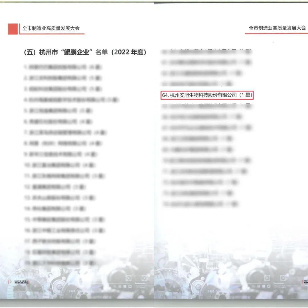 会上,重点表彰了一批有突出贡献的高质量发展企业。杭州安旭生物科技股份有限公司被授予杭州市“鲲鹏企业”荣誉称号,公司董事长凌世生先生上台接受表彰。