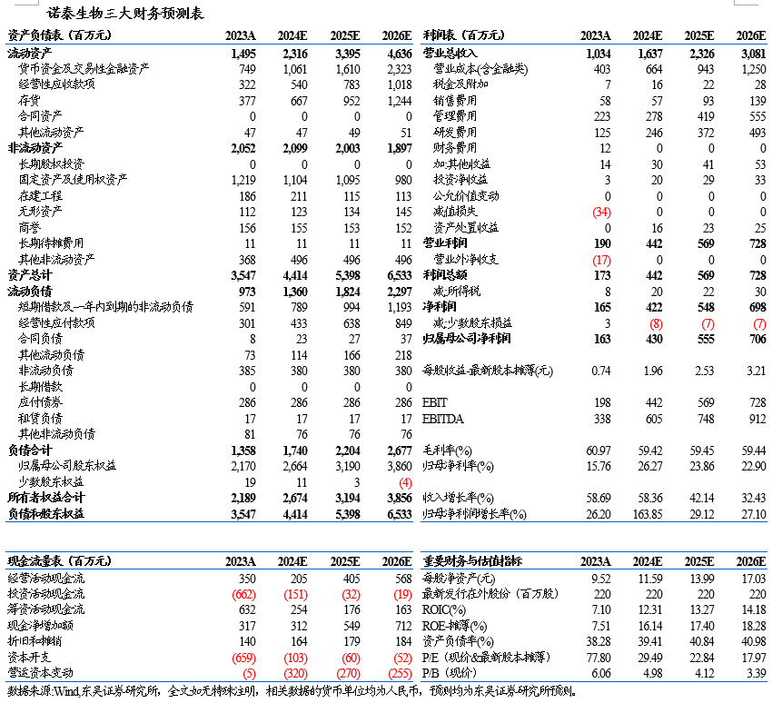 定制类业务:公司CDMO业务服务项目全面,目前多个订单在手,包括国内知名生物医药公司与欧洲大型药企。我们预计2024-2026年定制类业务收入增速为48%/29%/15%。