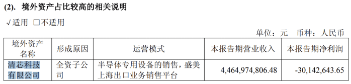 从2025年财报数据来看,盛美上海的海外市场拓展成效甚微。2025年,公司来自海外市场收入仅为0.29亿元,同比下滑3.58%,占总营收的比重不足1%。不仅如此,公司出口业务销售平台——清芯科技有限公司尚未实现盈利,其亏损金额为3014.26万元,延续上一年亏损态势。