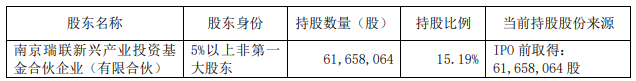 本次股份减持计划实施前,瑞联新产业持有公司股份61,658,064股,占公司总股本的15.19%。上述股份来源均为公司IPO前取得的股份,且已于2020年7月22日起解除限售并上市流通。本次股份减持计划实施后,瑞联新产业持有公司股份53,538,064股,占公司总股本的13.19%。
