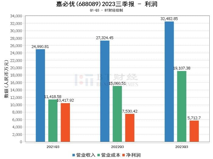 在利润方面,嘉必优2023年三季度的营业收入为3.25亿元,较上年同期的2.73亿元增长了18.88%。营业利润为5023.83万元,较上年同期的7110.55万元有所减少。净利润为5712.7万元,较上年同期的7530.42万元有所减少。毛利率为41.18%,较上年同期的44.88%有所下降。净利率为17.59%,较上年同期的27.56%有所下降。这些数据显示,虽然公司的营业收入增长,但是利润水平有所下滑。