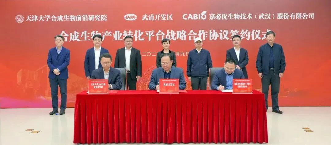 天津大学合成生物前沿研究院于2011年在武清开发区建立,历经十余年发展,取得了一系列代表性科研成果。2023年3月研究院与武清开发区签订《天津大学合成生物前沿研究院共建协议》,重点打造“一院一联盟三平台”。嘉必优生物技术(武汉)股份有限公司成立于2004年,目前已有多项技术实现产业化,产品广泛应用于婴幼儿配方食品、膳食营养补充剂和健康食品、特殊医学用途配方食品、化妆护理品等领域。三方此次签署战略合作协议,标志着天津大学合成生物前沿研究院的研发技术优势、嘉必优在合成生物学产品产业化领域的雄厚实力与武清本地的生物医药产业优势实现强强联合,未来将致力于生物医药产品实现规模化和产业化。