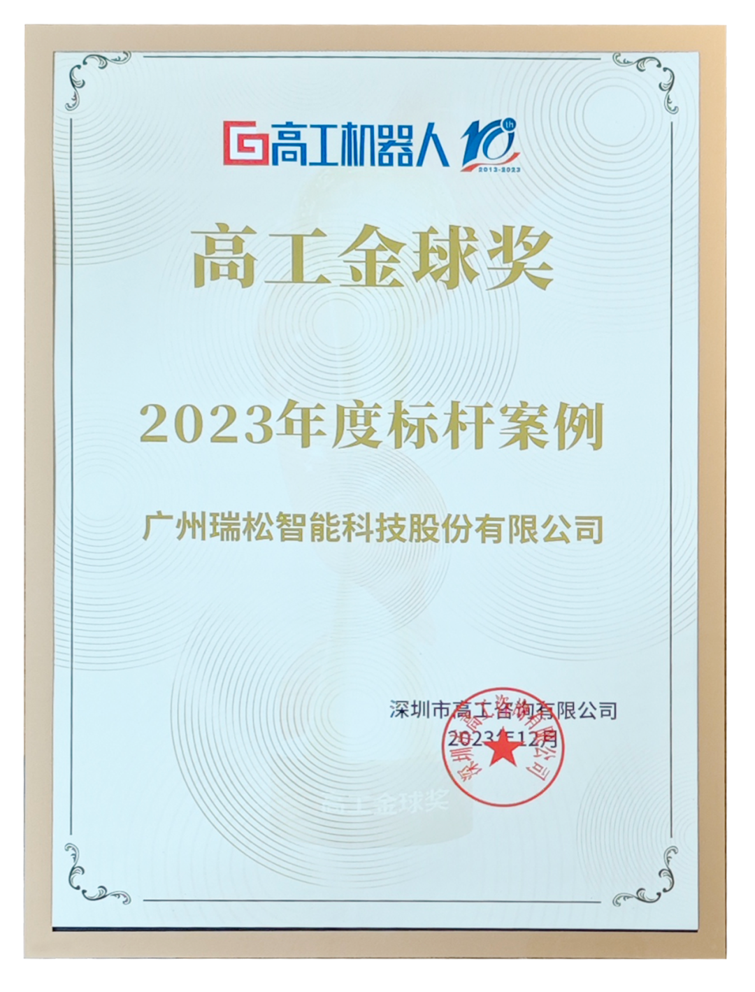 图:瑞松科技获评高工机器人“2023年度标杆案例”金球奖