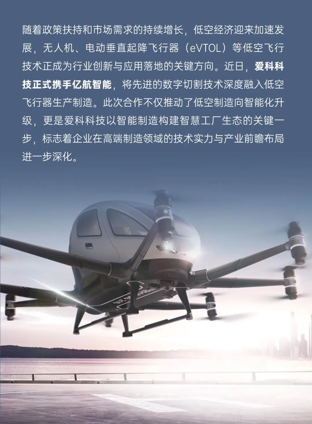抢滩低空经济|爱科科技携手亿航智能,打造智慧体制造新范式!