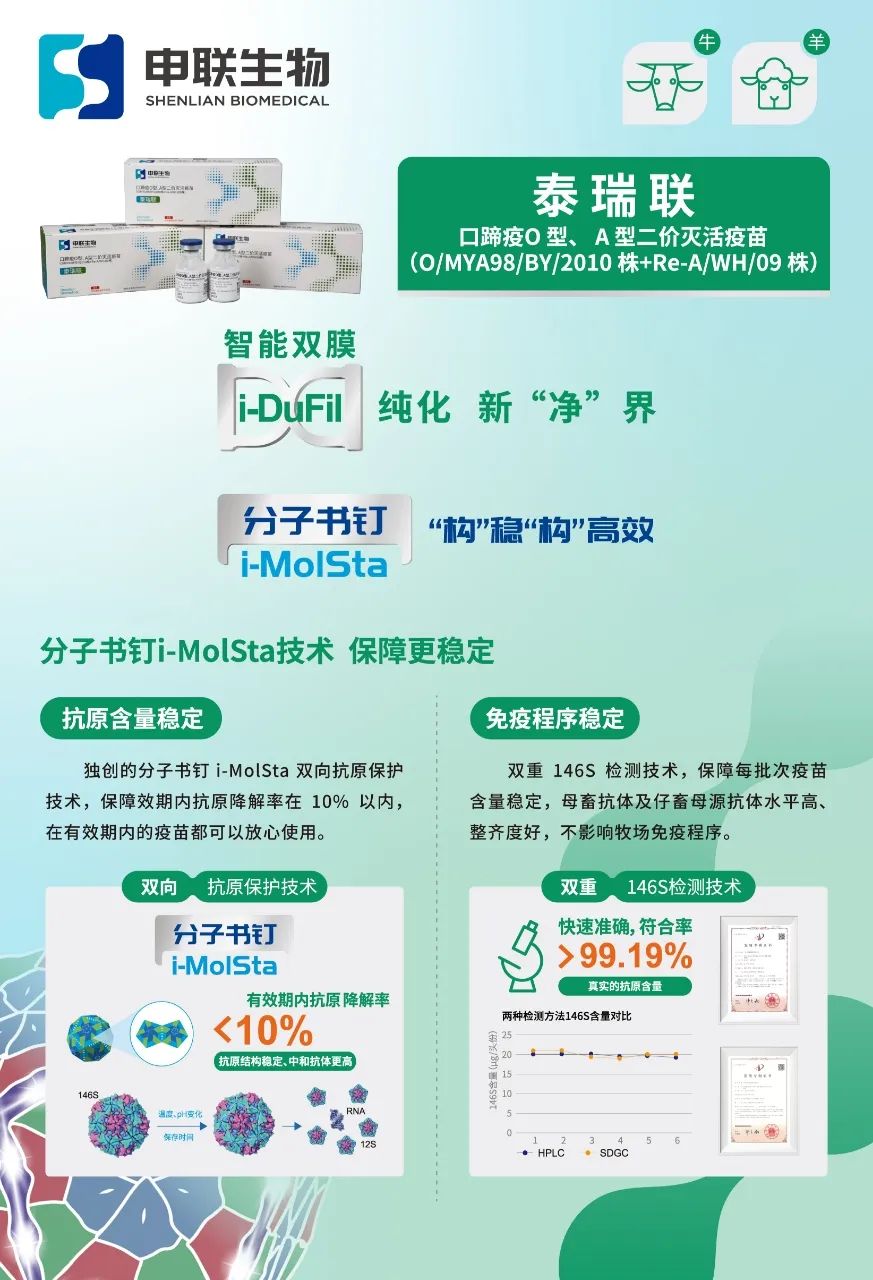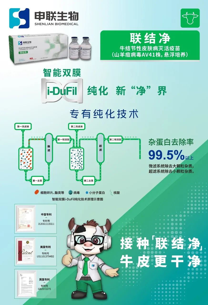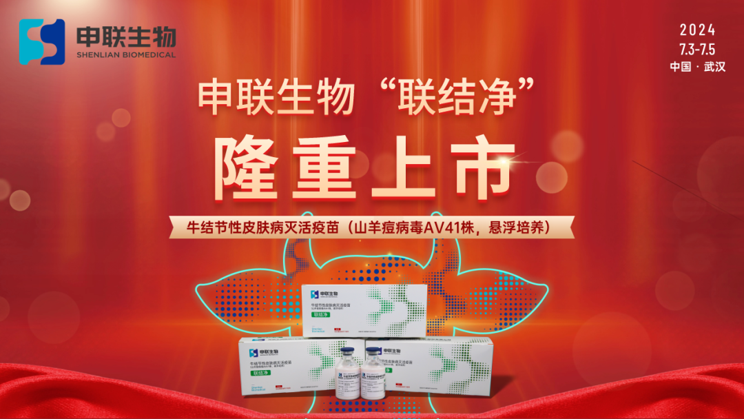 本次展会,申联生物携反刍板块诸多产品登陆A5场馆A47展位。明星产品“联结净”——牛结节性皮肤病灭活疫苗(山羊痘病毒AV41株,悬浮培养)在本次展会上隆重上市!