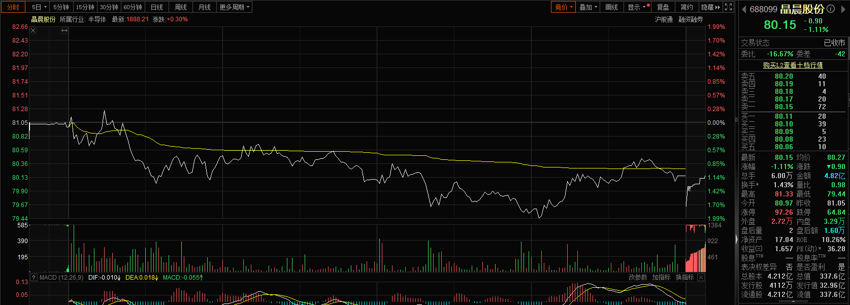 据了解,晶晨半导体(上海)股份有限公司已于2019年8月8日在A股科创板上市(股票代码:688099.SH),截至2025年11月17日收盘,市值约337.6亿人民币。