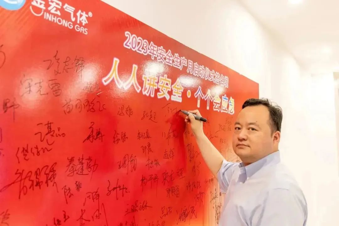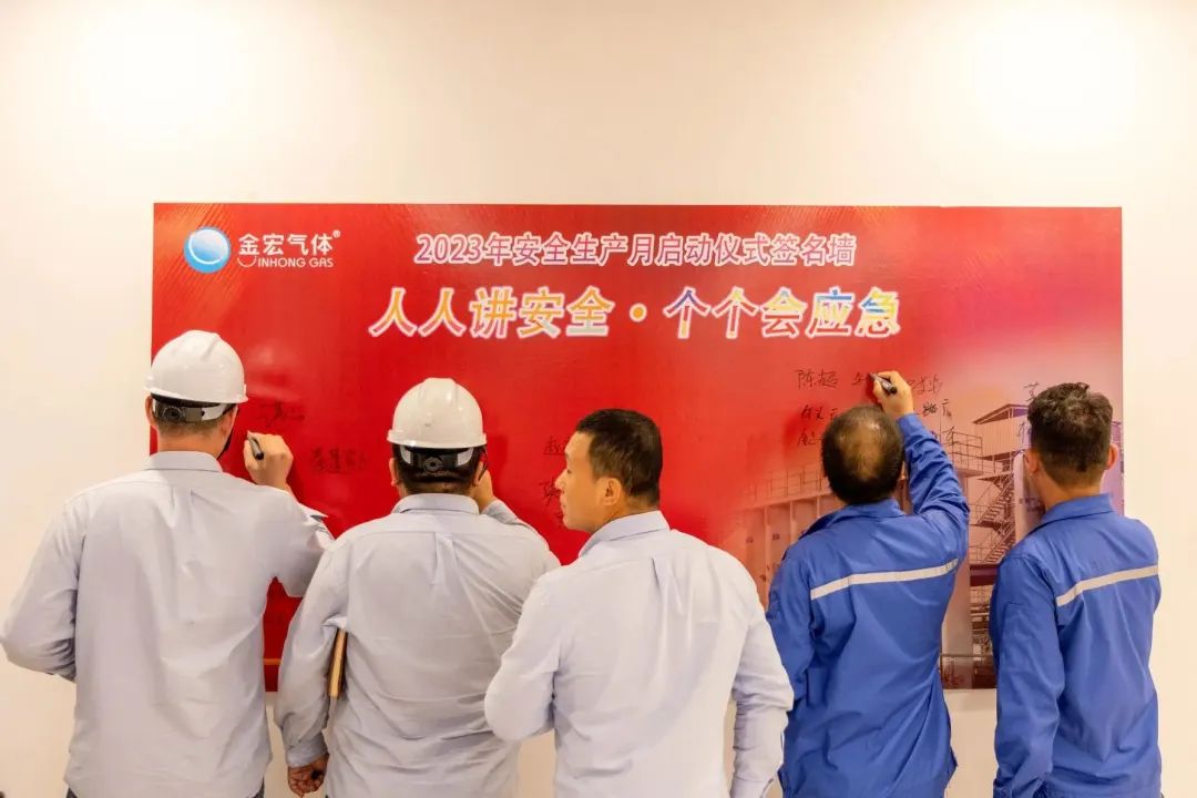 金总表示,对金宏气体而言,月月都是安全生产月、天天都是安全生产日,要永远保持对安全的敬畏之心,深入脑海、骨髓与血液。金宏的每位员工都要做金宏安全的守护者,做金宏安全文化的倡导者,在日常工作中,要紧紧围绕公司发展战略和气体产品特性不断摸索、思考、总结和提升,从每一个细节积累、巩固、强化、提升,不断突破自我认知并带动相关各方对气体行业的科学认知,加强各类教育培训、技能比武以及实践提升,共同奋斗,为公司更加快速、高效、优质地发展以及打造行业第一民族品牌奠定坚实基础。