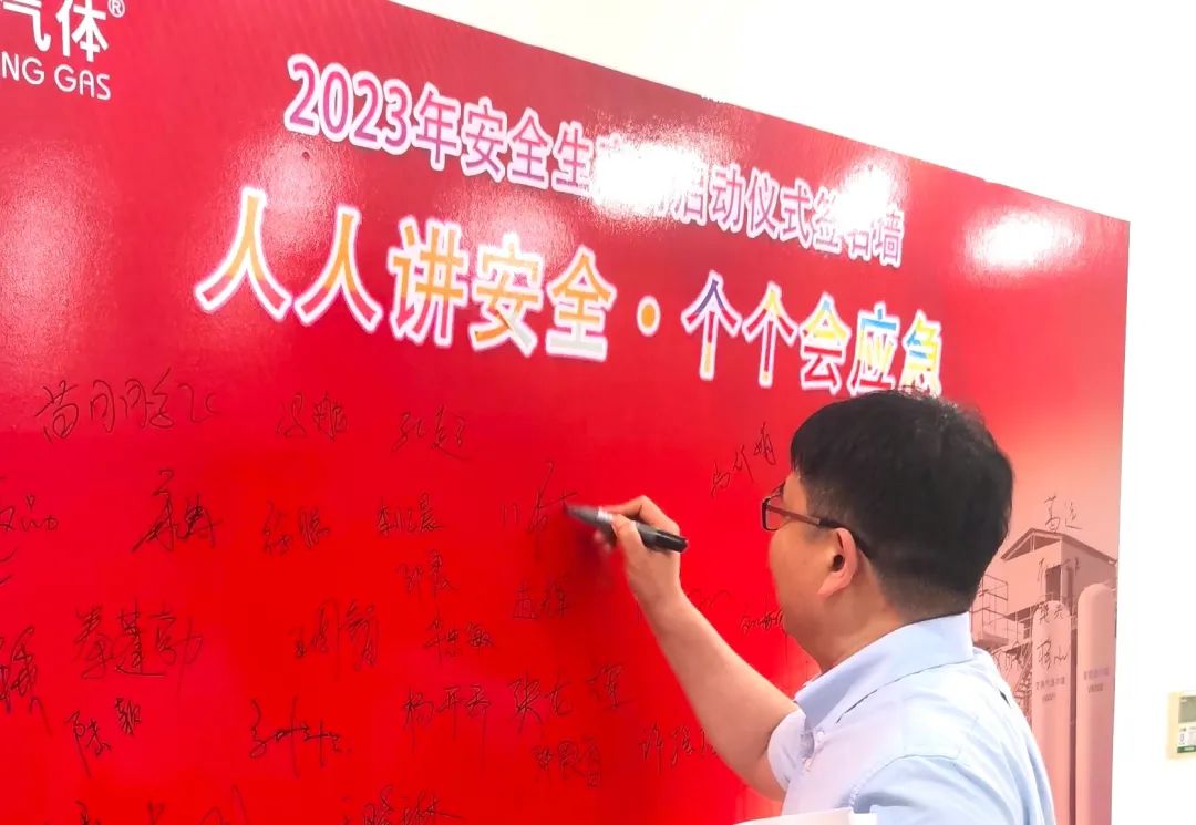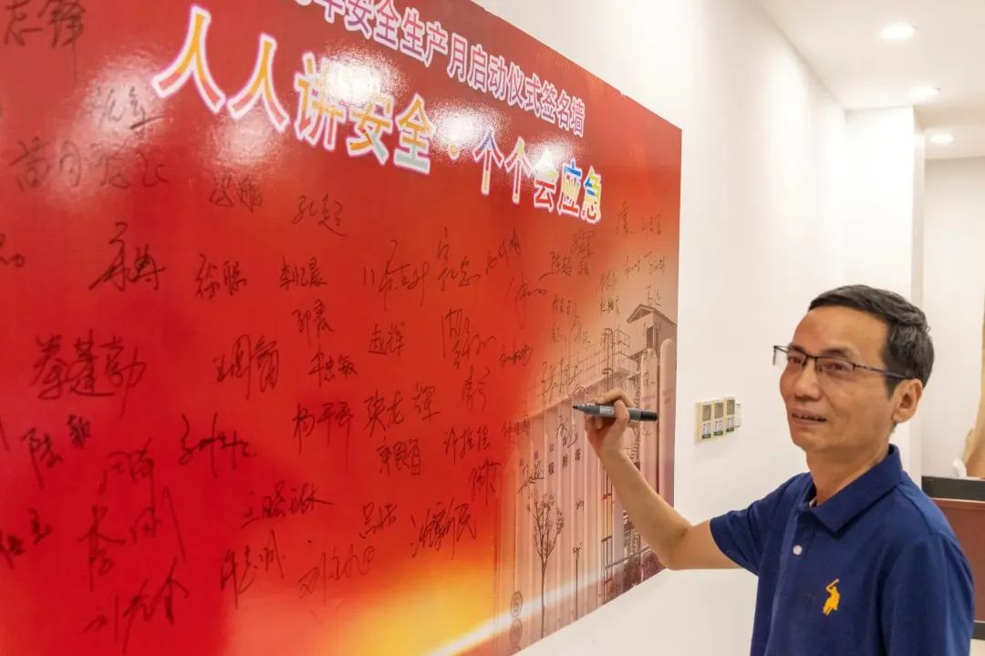 仪式开始前,现场参会人员陆续在“人人讲安全,个个会应急”的签名墙上签名承诺。