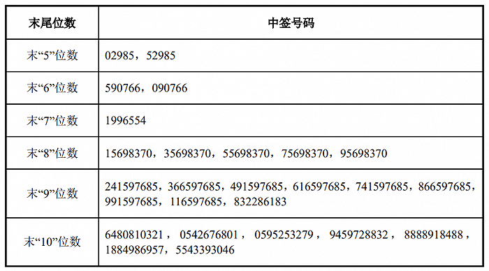 金宏气体7月18日发布向不特定对象发行可转换公司债券网上中签结果公告,凡参与金宏转债网上申购的投资者持有的申购配号尾数与下图号码相同的,则为中签号码。中签号码共有20.9782万个,每个中签号码只能认购1手(1000元)金宏转债。