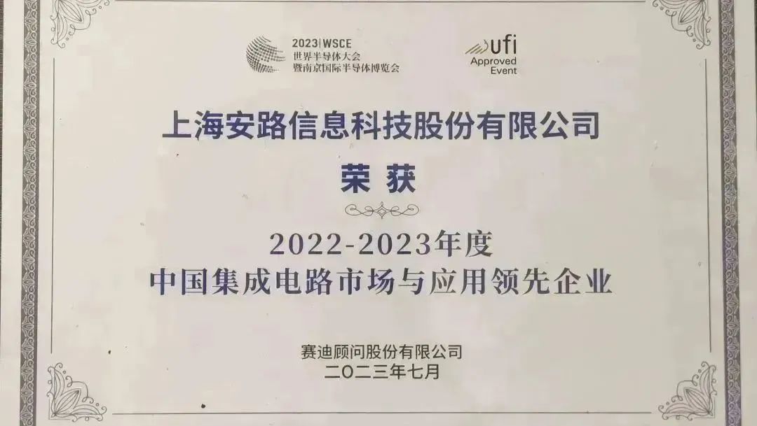 7月19-21日,2023世界半导体大会暨南京国际半导体博览会在南京国际博览中心隆重召开。本届大会以“芯纽带,新未来”为主题,聚焦行业新市场、新产品、新技术,大会上发布了“2022-2023年度中国集成电路高质量发展‘两优一先’遴选结果”,上海安路信息科技股份有限公司荣获“2022-2023中国集成电路市场与应用领先企业”。