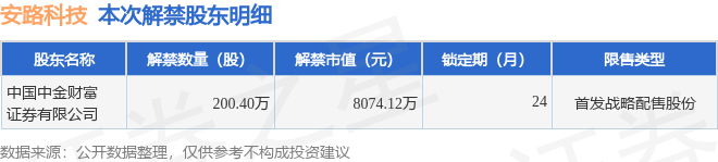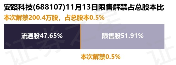 证券之星消息,根据市场公开信息整理,安路科技(688107)于11月13日将有200.4万股限售股份解禁上市,为公司首发战略配售股份,占公司总股本0.5%。最近一年内,该股累计解禁1.46亿股,占总股本的36.55%。本次解禁后,公司还有2.08亿股限售股份,占总股本51.91%。具体如下图所示: