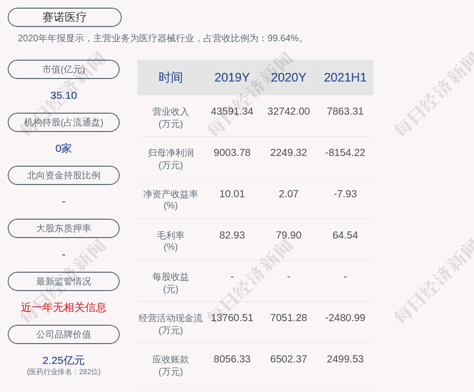 2020年年报显示,赛诺医疗的主营业务为医疗器械行业,占营收比例为:99.64%。