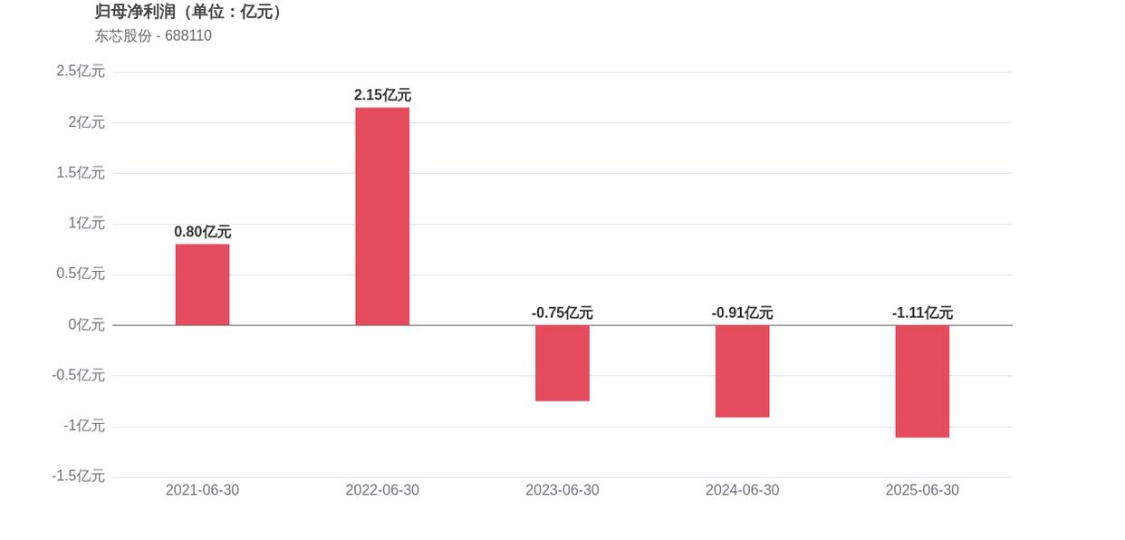 在2025年上半年,东芯股份的经营业绩呈现营收增长但亏损持续的态势,实现营业收入3.43亿元,同比增长28.81%,但归母净利润为-1.11亿元,同比下滑21.78%。引人关注的是公司已连续3年中报出现亏损,显示出盈利能力仍待改善。