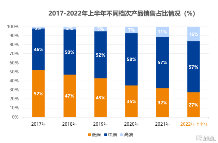 2022年上半年,鼎阳科技的各档次产品均实现了持续增长,尤其高端产品显著放量,期内高端产品收入同比增长119%,占比进一步提升至16%。