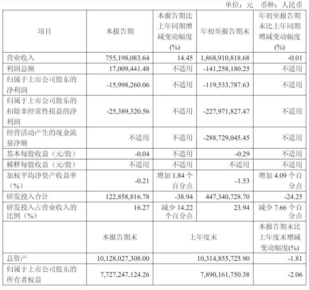 华大智造2025年第三季度营收为7.55亿元,同比增长14.45%;净亏损为1600万元,扣非后净亏损为2539万元。