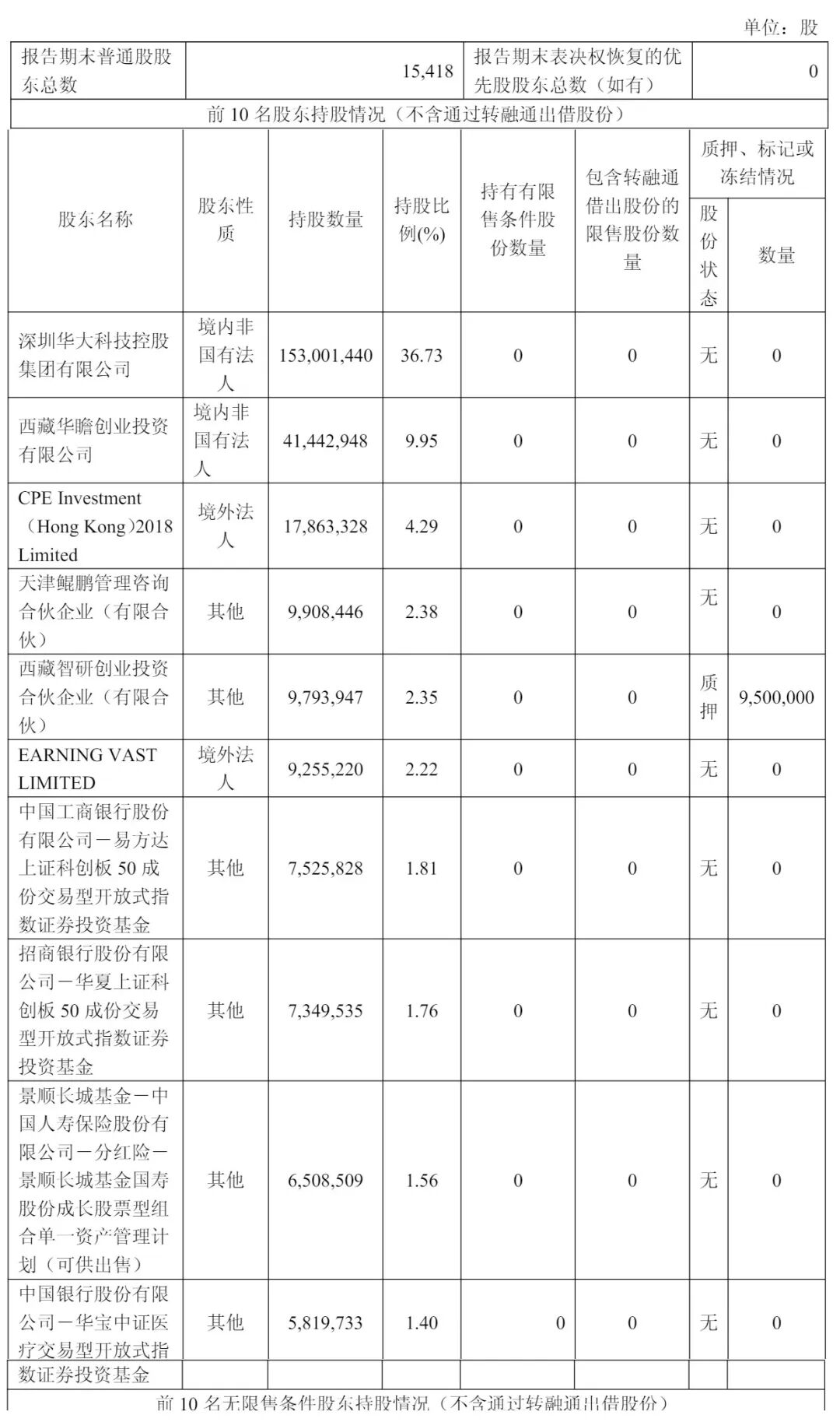截至2025年6月30日,汪建旗下深圳华大智造控股有限公司持股为36.73%,汪建旗下华瞻创投持股为9.95%,CPE Investment持股为4.88%,招商银行股份有限公司-华夏上证科创板50 成份交易型开放式指数证券投资基金持股为2.77%;
