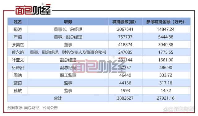 公司共同实际控制人为郑涛、严燕、蔡永略以及张美杰四人,本次减持中,四人共同减持1.52%的公司股份。其中,第一大股东及董事长郑涛本次减持直接持股部分206.75万股,占公司股份的0.9%,参考减持金额为1.48亿元。