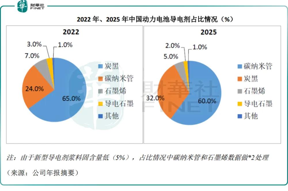 碳纳米管赛道小而美,技术壁垒较高,导电剂性能表现更佳,对于提升锂电池的能量密度及改善循环寿命效果更好,在锂电池降本增效、技术不断迭代(如高镍、三元和硅碳负极的渗透率提升)的大趋势下,碳纳米管无疑会对炭黑等传统导电剂形成逐步替代,近年来,其市场渗透率逐年攀升。