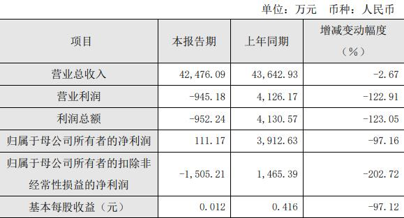 2022年度,公司实现营业收入42476.09万元,较上年同期减少2.67%;实现归属于母公司所有者的净利润111.17万元,较上年同期减少97.16%;实现归属于母公司所有者的扣除非经常性损益的净利润-1505.21万元,较上年同期减少202.72%。