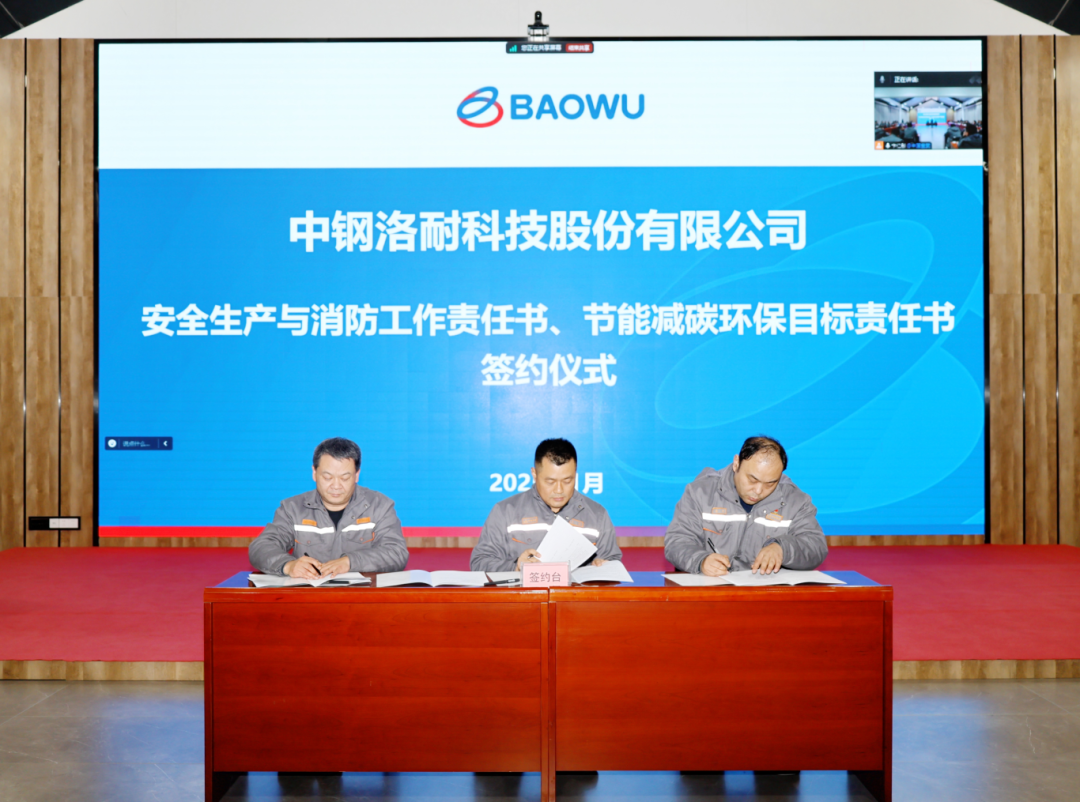 会上,常务副总经理耿可明传达了中钢集团2025年安全生产、能源环保及绿色低碳工作会议精神。公司安全保卫部和装备技改部/能源环保部/碳中和办公室分别报告了公司2024年安全生产、能源环保及绿色低碳工作情况和2025年工作计划。党委副书记、总经理左锐与生产基地负责人、部门负责人依次签订2025年安全消防、节能减碳环保目标责任书。