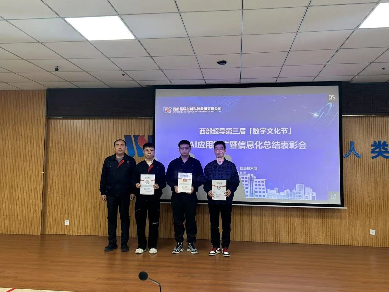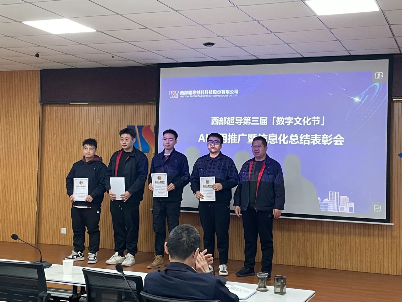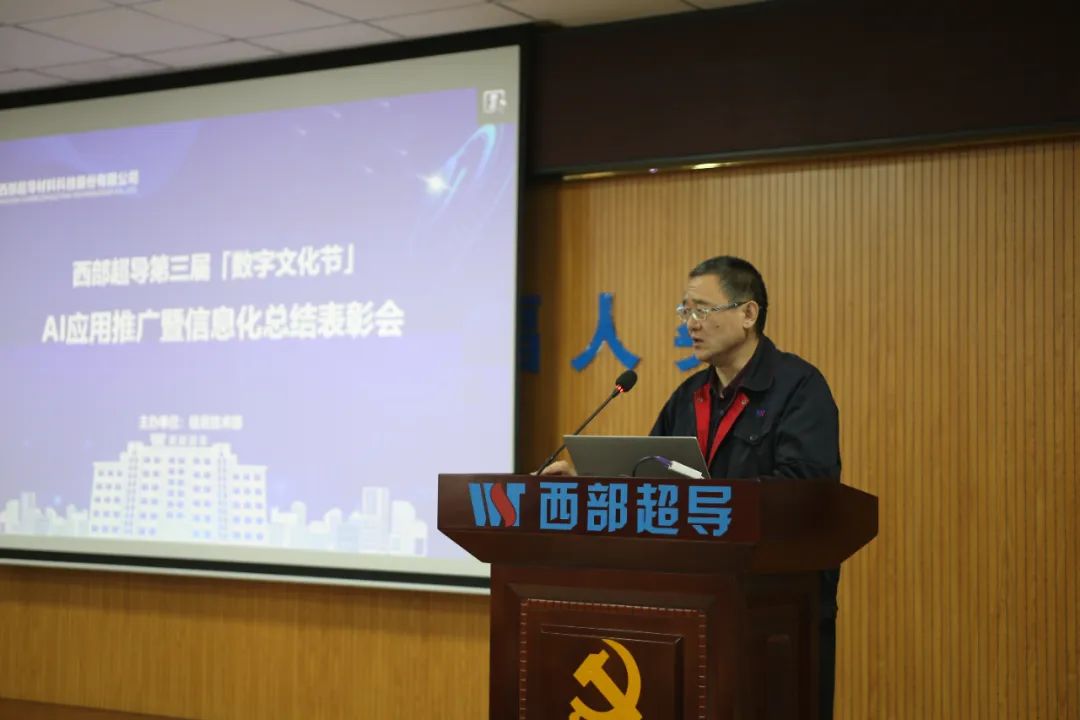 西部超导公司第三届“数字文化节”在经开园区六楼会议室举行。公司高管、信息化工作领导小组成员、公司人工智能应用推进小组成员、各部门主管、受表彰人员等参加了活动。