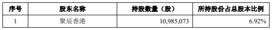 截至2024年6月30日,出让方所持聚辰股份首发前股份的数量为10,985,073股,占总股本比例为6.92%。