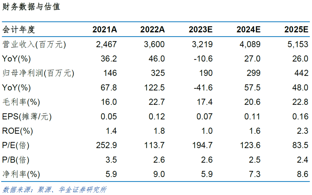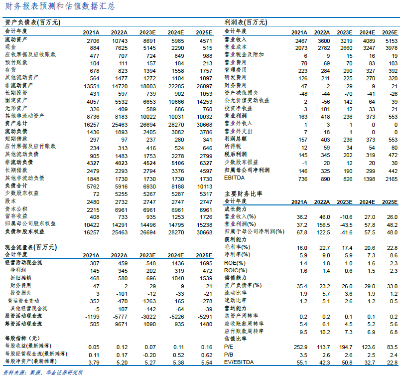 鉴于终端市场需求复苏缓慢,我们调整对公司原有的业绩预测。预计2023年至2025年营业收入由原来的38.39/44.45/50.72亿元调整为32.19/40.89/51.53亿元,增速分别为-10.6%/27.0%/26.0%;归母净利润由原来的3.61/4.69/5.83亿元调整为1.90/2.99/4.42亿元,增速分别为-41.6%/57.5%/48.0%。公司作为国内半导体硅片领军企业,稳步推进产能扩张,规模效应渐现,加之终端市场逐渐复苏,公司营收规模和盈利能力有望改善。持续推荐,维持“增持”评级。