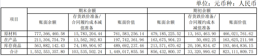 作为高端制造业,截至2023年12月31日,沪硅产业存货总额为15.53亿元,存货跌价准备金额为1.04亿元,占比为6.67%。