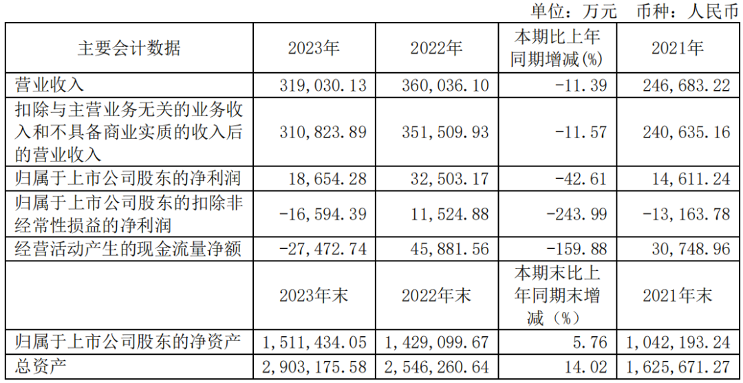 2023年度受整体经济环境和半导体市场下行周期的影响,沪硅产业营业收入较2022年度有所回落,降幅为11.39%。