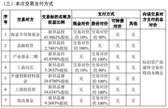 沪硅产业(688126.SH)今日复牌。沪硅产业上周五(3月7日)晚间披露的发行股份及支付现金购买资产并募集配套资金暨关联交易预案显示,本次发行股份及支付现金购买资产为上市公司收购控股子公司少数股权。上市公司拟通过发行股份及支付现金的方式购买交易对方持有的标的资产,即上海新昇晶投半导体科技有限公司(以下简称“新昇晶投”)46.7354%股权、上海新昇晶科半导体科技有限公司(以下简称“新昇晶科”)49.1228%股权和上海新昇晶睿半导体科技有限公司(以下简称“新昇晶睿”)48.7805%股权。