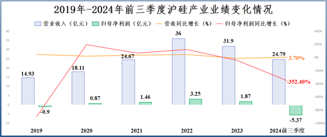 2024年前三季度,沪硅产业实现营收24.79亿元,同比增长3.7%;实现净利润-5.37亿元,同比下滑352.4%。