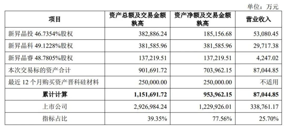 本次交易的标的资产为新昇晶投46.7354%股权、新昇晶科49.1228%股权和新昇晶睿48.7805%股权。