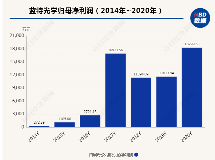 上市之初,蓝特光学业绩还不错:2020年全年和2021年上半年营收分别为4.39亿元和2.07亿元,同比增长31.38%和12.60%;同期归属于上市公司股东的净利润分别为1.83亿元和7625万元,同比增长57.57%和10.14%。