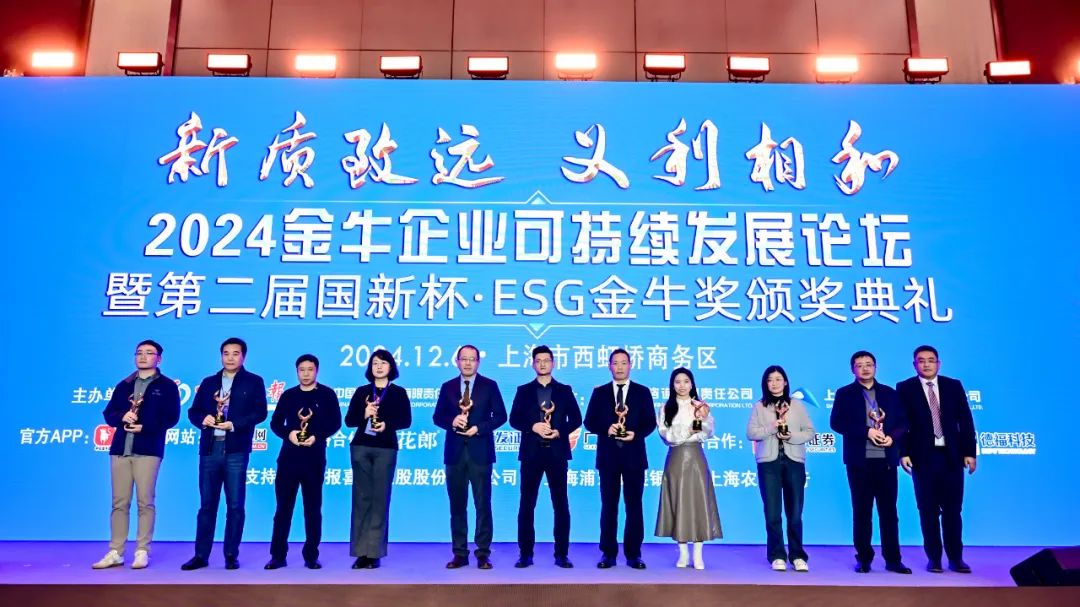 ESG金牛奖是中国资本市场最具公信力和影响力的权威奖项之一,旨在激励上市公司积极践行ESG建设,加强企业管理、市值管理、风险管理,实现长期可持续发展,此次获奖企业全方位展现了中国企业、特别是上市公司践行ESG理念的影响与成效。