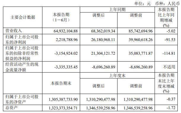 昨日,晶华微披露2023年半年度报告。今年上半年,晶华微实现营业收入6493.21万元,同比下滑5.02%;归属于上市公司股东的净利润221.88万元,同比下滑91.53%;归属于上市公司股东的扣除非经常性损益的净利润-315.49万元,同比下滑114.81%;经营活动产生的现金流量净额-333.53万元。