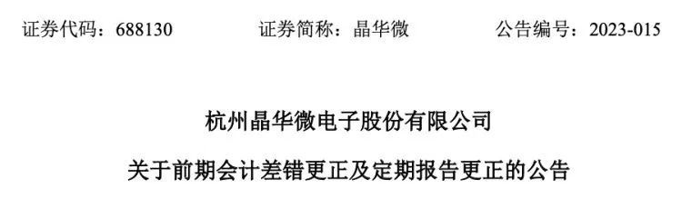 今年4月28日,上市不足一年的晶华微发布公告称,公司及时任财务总监周荣新、董事长吕汉泉被上交所给予监管警示,原因是公司前期部分会计处理存在差错,导致2022年半年度及第三季度报告相关财务信息披露不准确。