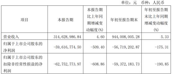 其中第三季度,科兴制药实现营业收入3.15亿元,同比增长4.60%;归属于上市公司股东的净利润-5961.68万元,同比下降509.40%;归属于上市公司股东的扣非净利润-6275.28万元,同比下降608.86%。