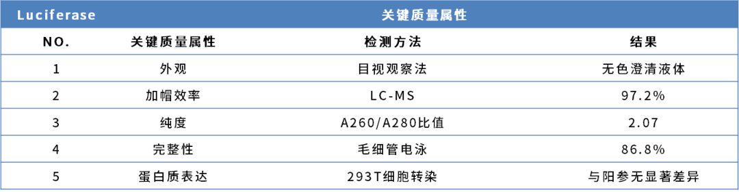 一管式合成Luciferase mRNA与传统工艺相比,mRNA检测结果无明显差异:
